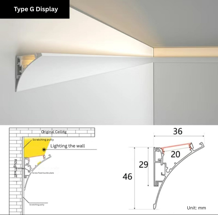 Perfect for residential ceilings, commercial showrooms, feature walls, or minimalist interiors, this profile offers seamless integration with a clean, frameless finish.